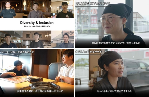 物語コーポレーションは、「一人ひとりが違いを恐れず積極的に発言し議論を交わすことで、小さな改善が積み重なり、大きな差別化へとつながっていく」という考えのもと、2022年に「D&I宣言」を掲げて「個」の活躍を支援してきました。特に、女性、インターナショナル、セクシュアルマイノリティ、チャレンジド(障がい者)、シニア、パートナーの6つの属性に注力し、研修やサポート体制の構築、福利厚生の充実などの取り組みを進めています。今後も、一人ひとりが活躍できる環境づくりを加速させ、とびっきりの笑顔と心からの元気で世の中をイキイキさせていきます。